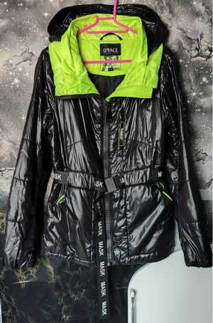 Куртка черная блестящая куртка с неоново-зеленым воротником и поясом является молодежной моделью от бренда GRACE Она...