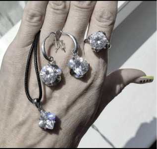 Очень красивый набор массивные серьги ,кулон и кольцо под серебро камни сверкают кольцо регулируется