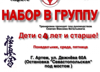 Набор в группу Киокусинкай карате с 4 лет и старше! Город Артем, ул.