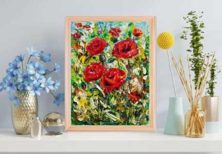 Авторская картина Маки расцвели, оригинал, написана масляными красками на грунтованном картоне.