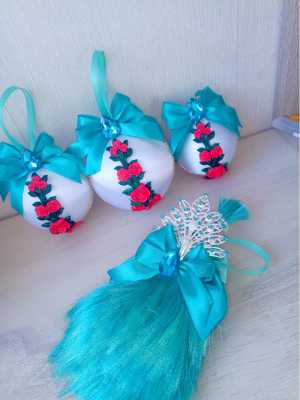 Продам комплект новогодних шаров с павлином в цвете Тиффани ручной работы. Лепнина с жидкого пластика.