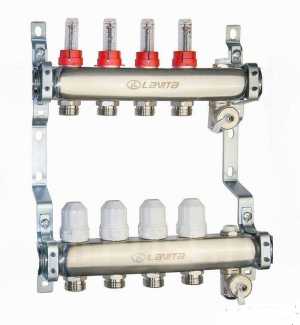 Коллекторные группы корейской компании ЛАВИТА на 3,4,5,6,8,10,12 контуров из нержавеющей стали..