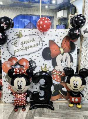 Готовая Фотозона ,фотофон Минни Маус с Днем рождения есть по краям колечки для крепления к стене фольгированные фигуры Микки...