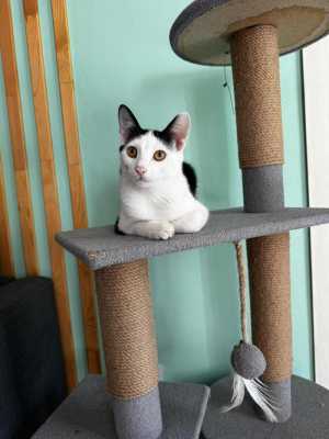 Здравствуйте! Ищем дом чудесному котику! Нашли малыша на улице — ему примерно год, может, чуть больше.